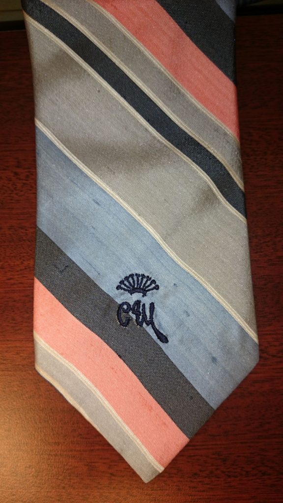 Detail of the tie and logo